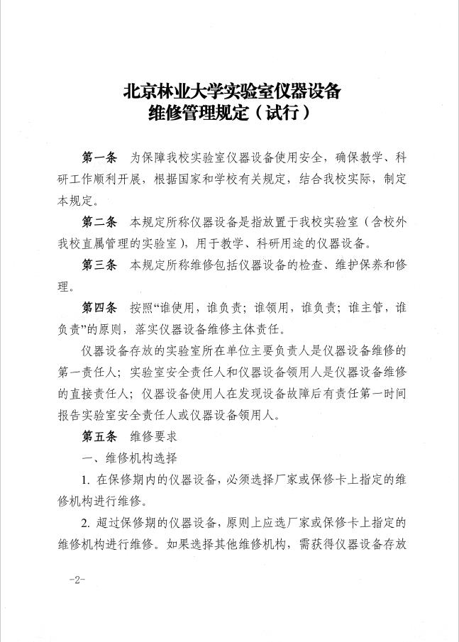 【实验室安全】北京林业大学实验室仪器设备维修管理规定(试行)